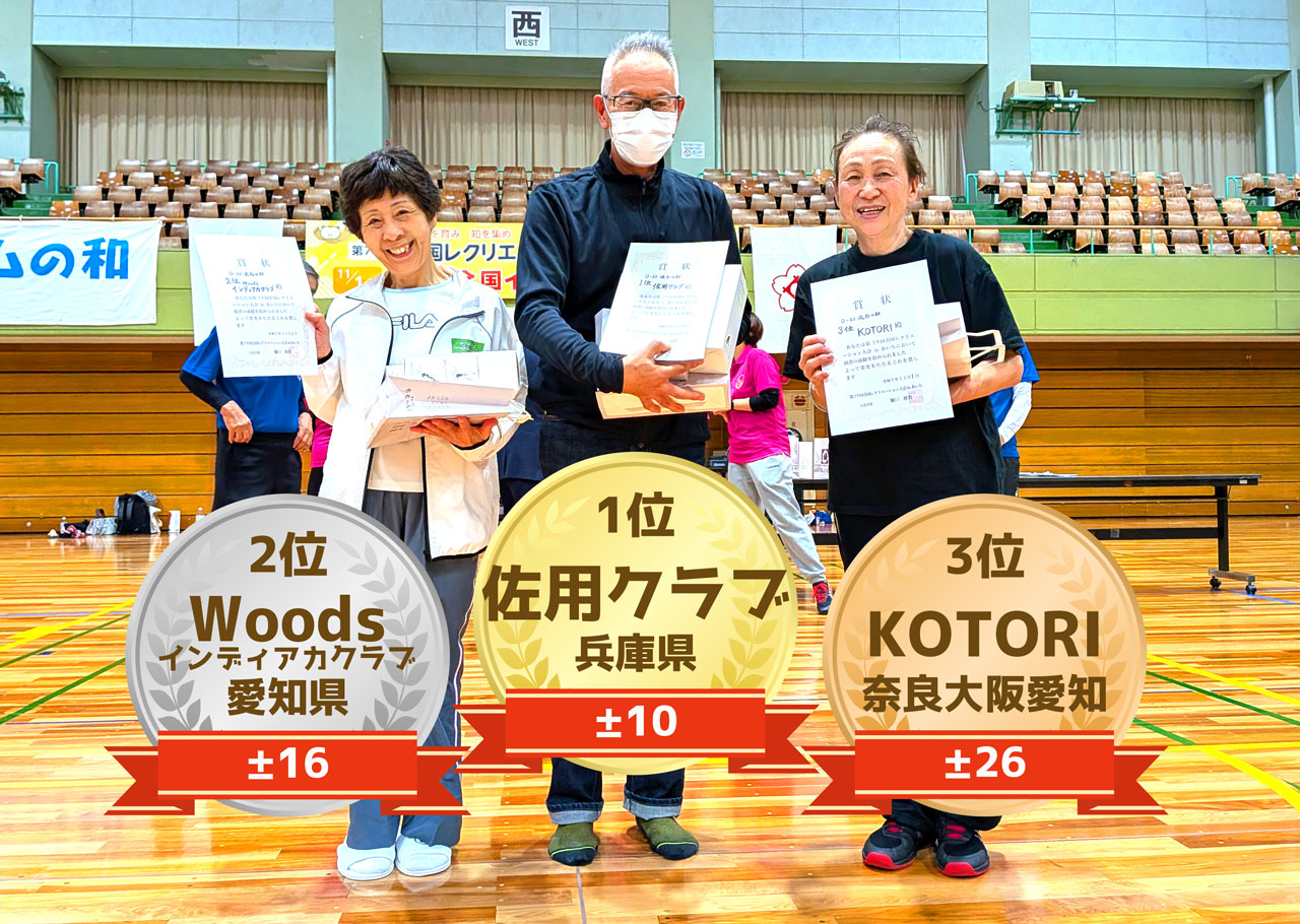 1位:佐用クラブ(兵庫県)、2位:WOODS(愛知県)、3位:KOTORI(奈良大阪愛知)
