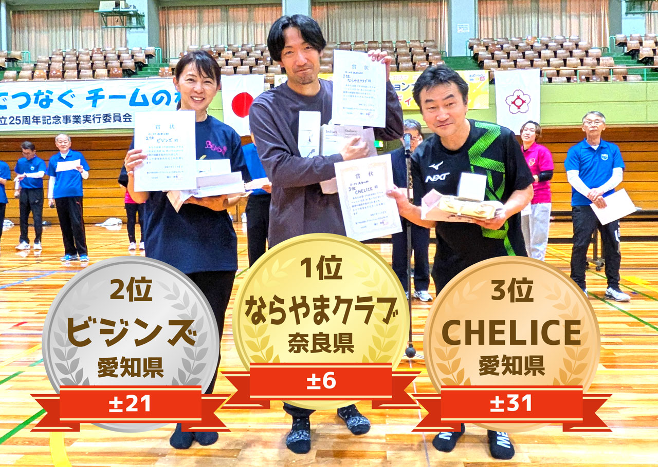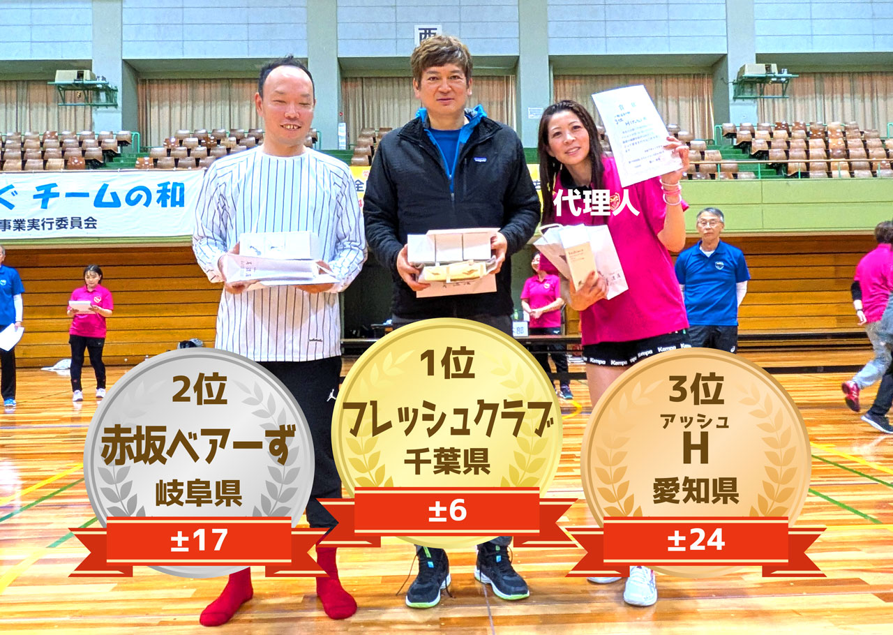 1位:羽根気打Cherry(愛知県)、2位:東濃(岐阜県)、3位:飛翔(愛知県)