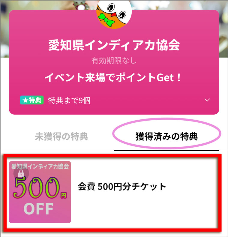 10ポイント貯まったら、500円OFFの特典チケットが発行されます!